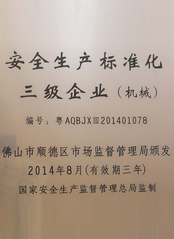 圖二 安全生産标準化三級企業